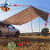 •Az autó napellenző egy univerzális termék, amely árnyékolásra vagy eső elleni védelemként használható az autója mellett. 5 x 2 méteres méretével akár 10 négyzetméternyi területet is lefed, ahol akár 6 ember is elbújhat az eső vagy a nap elől.