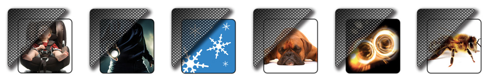 Les pare-soleils sont élégants de l’extérieur (comme un véhicule avec vitres teintées) et, par la même occasion, empêchent les passants de regarder à l’intérieur du véhicule (les objets visibles sur les sièges et dans le coffre attirent les cambrioleurs). Aucune homologation n’est nécessaire pour les pare-soleils.